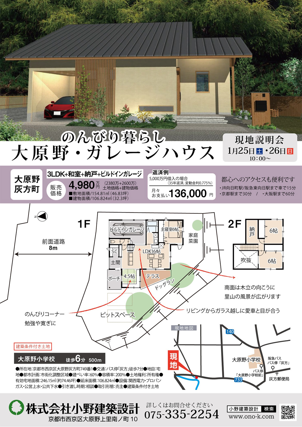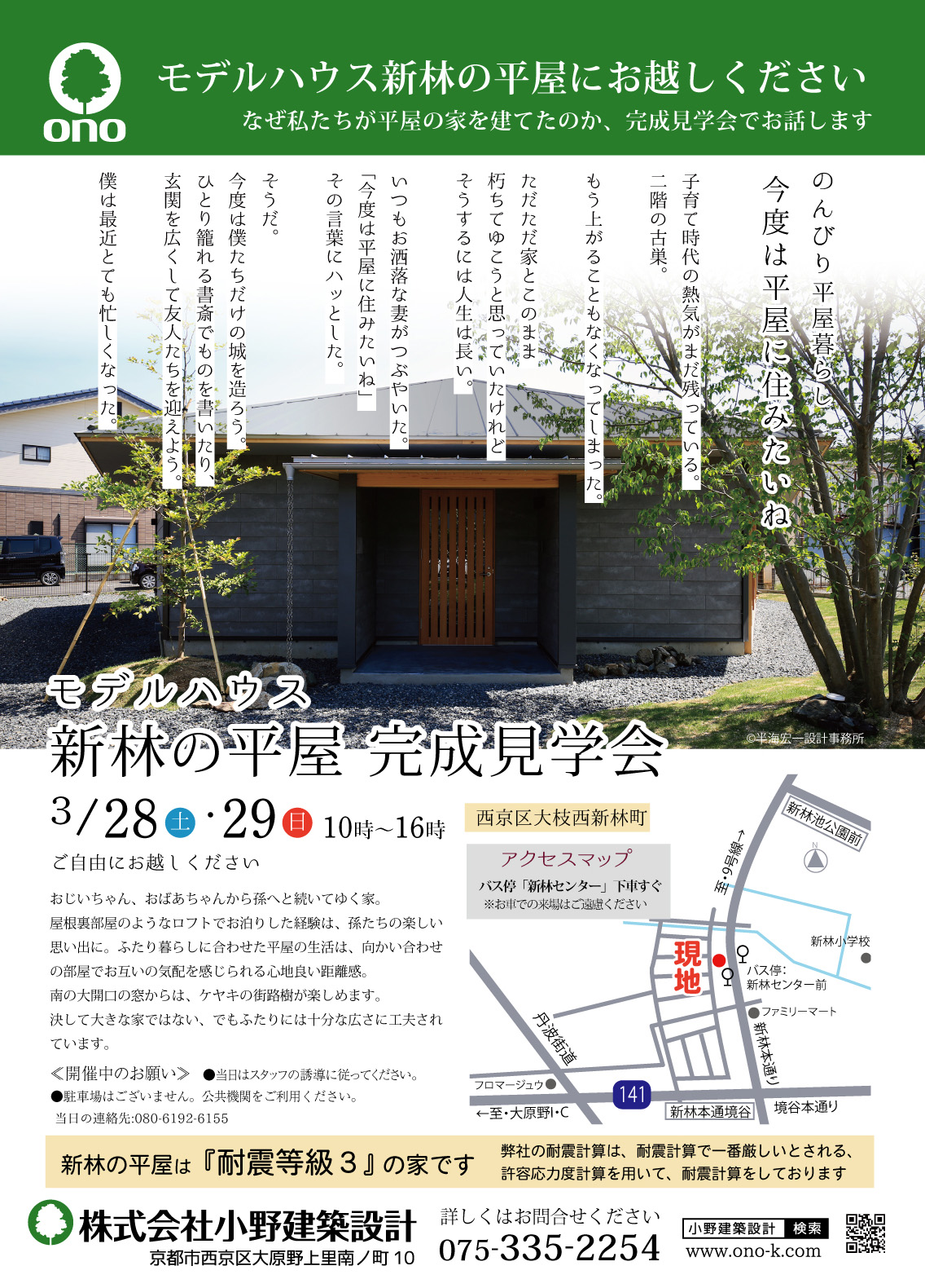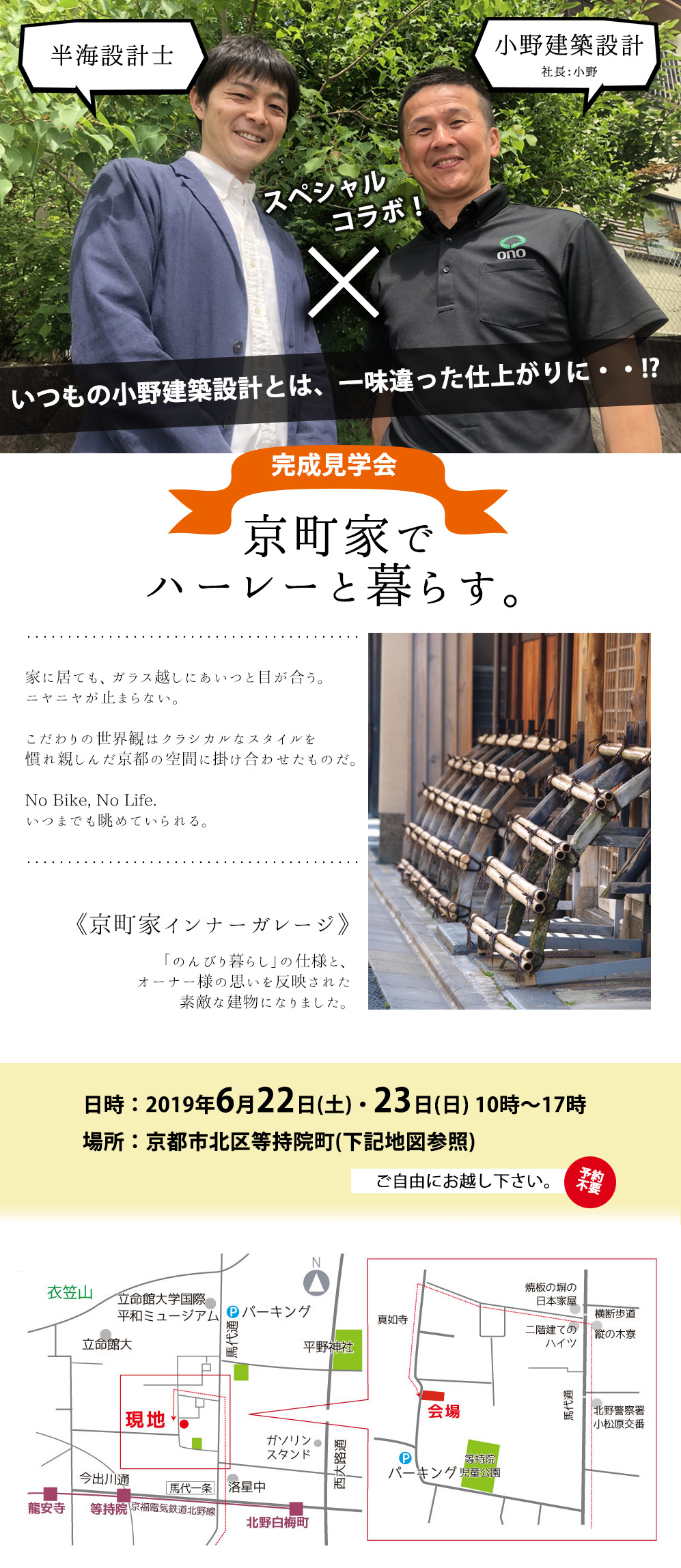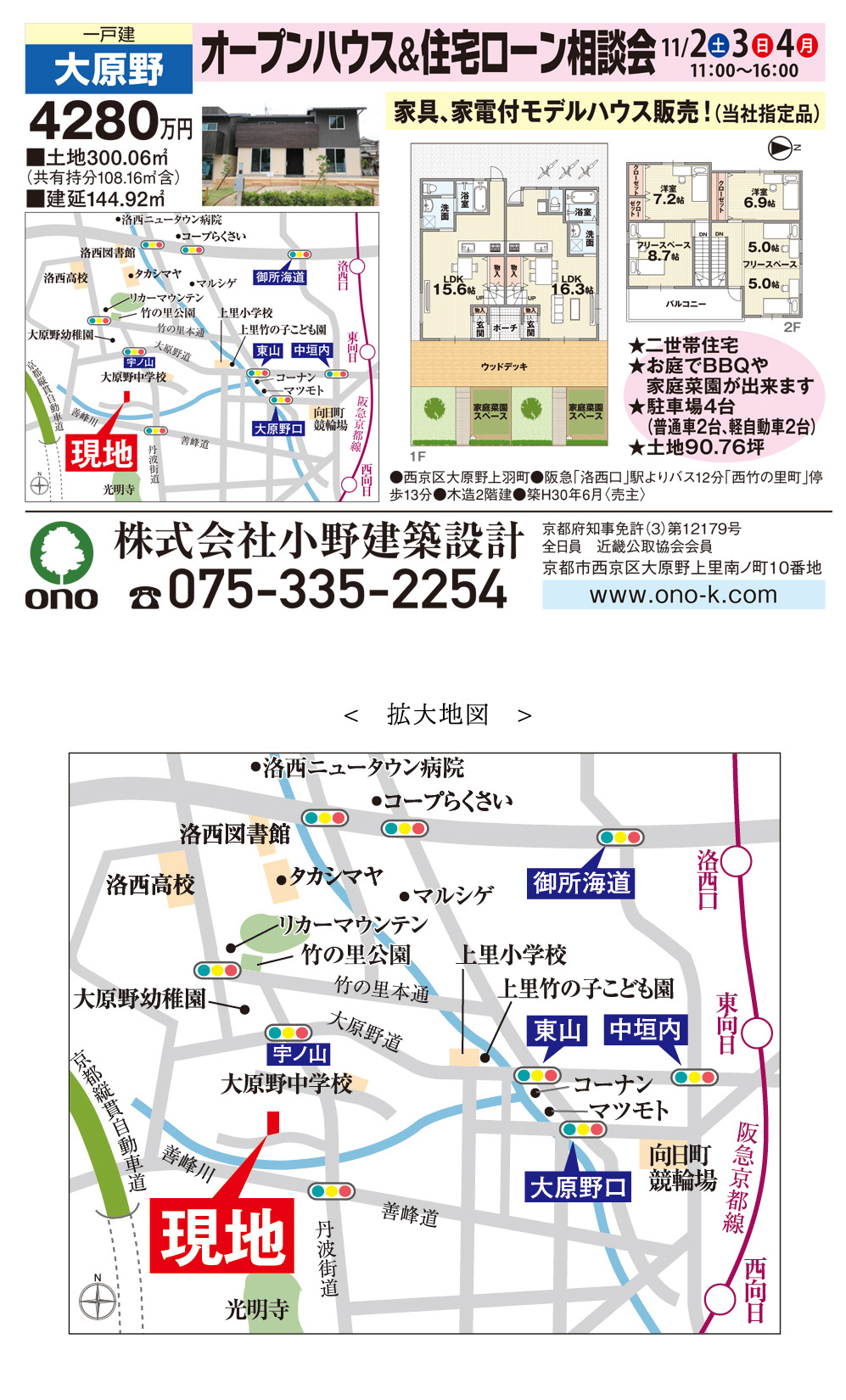 時間:第1部 10:00〜11:30「土地・資金計画と準備」、第2部 13:00〜14:30「小野建築設計の家づくり」