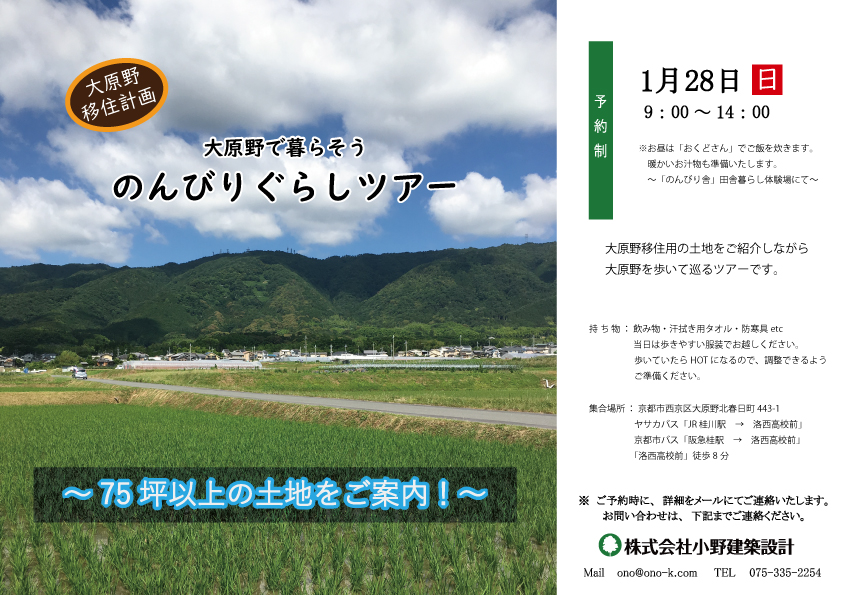 大原野での暮らしをお考えの方は、是非ご参加下さい。