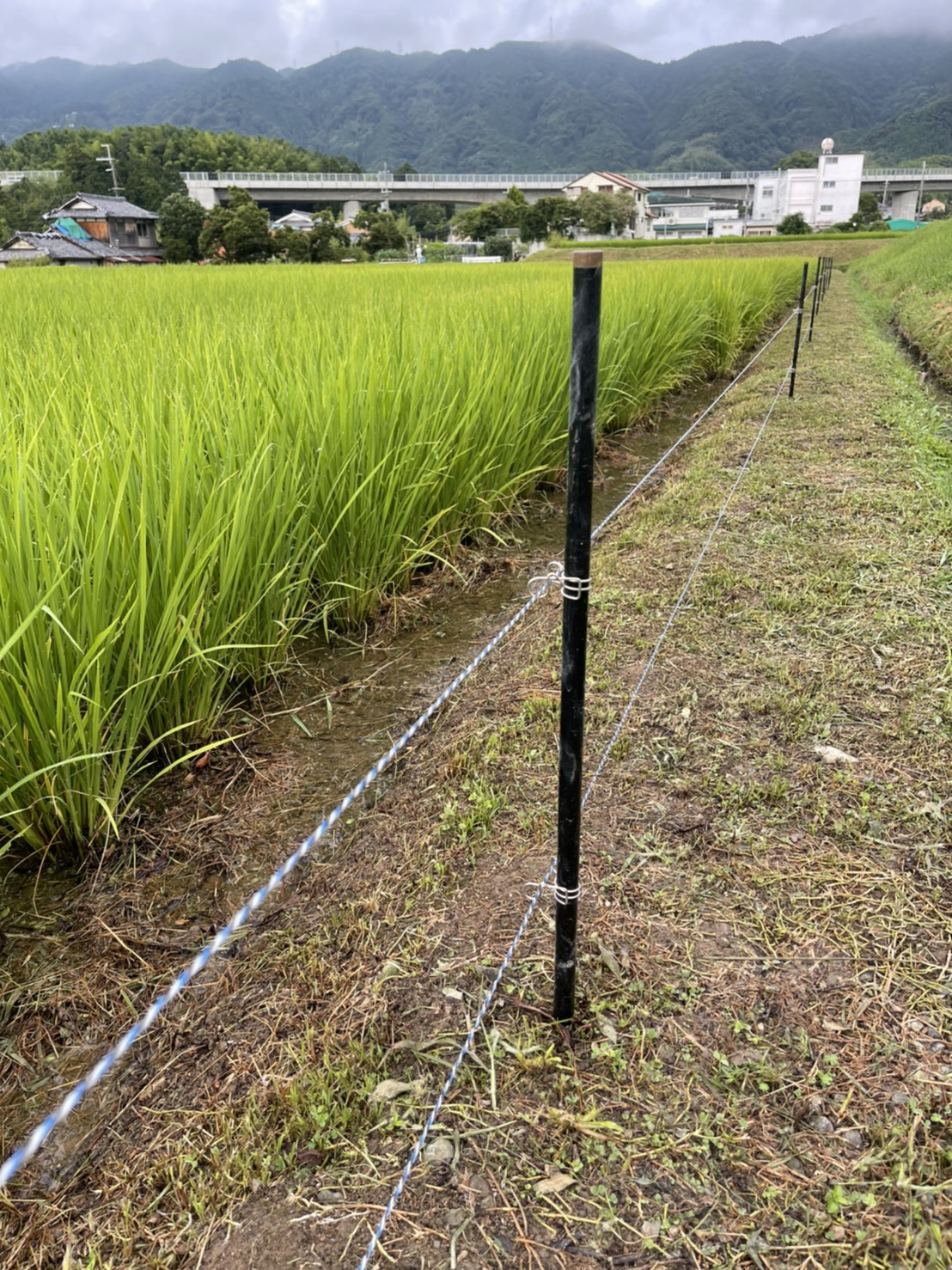 猪が田んぼに入ると稲が倒され、稲穂が実りません。また、一度獣と触れた稲は獣臭が付いてしまい、食べられなくなります。
