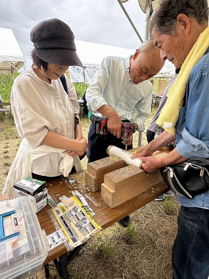 竹の活用として、何ができるだろうと、スタッフたちが竹灯籠に挑戦しました。